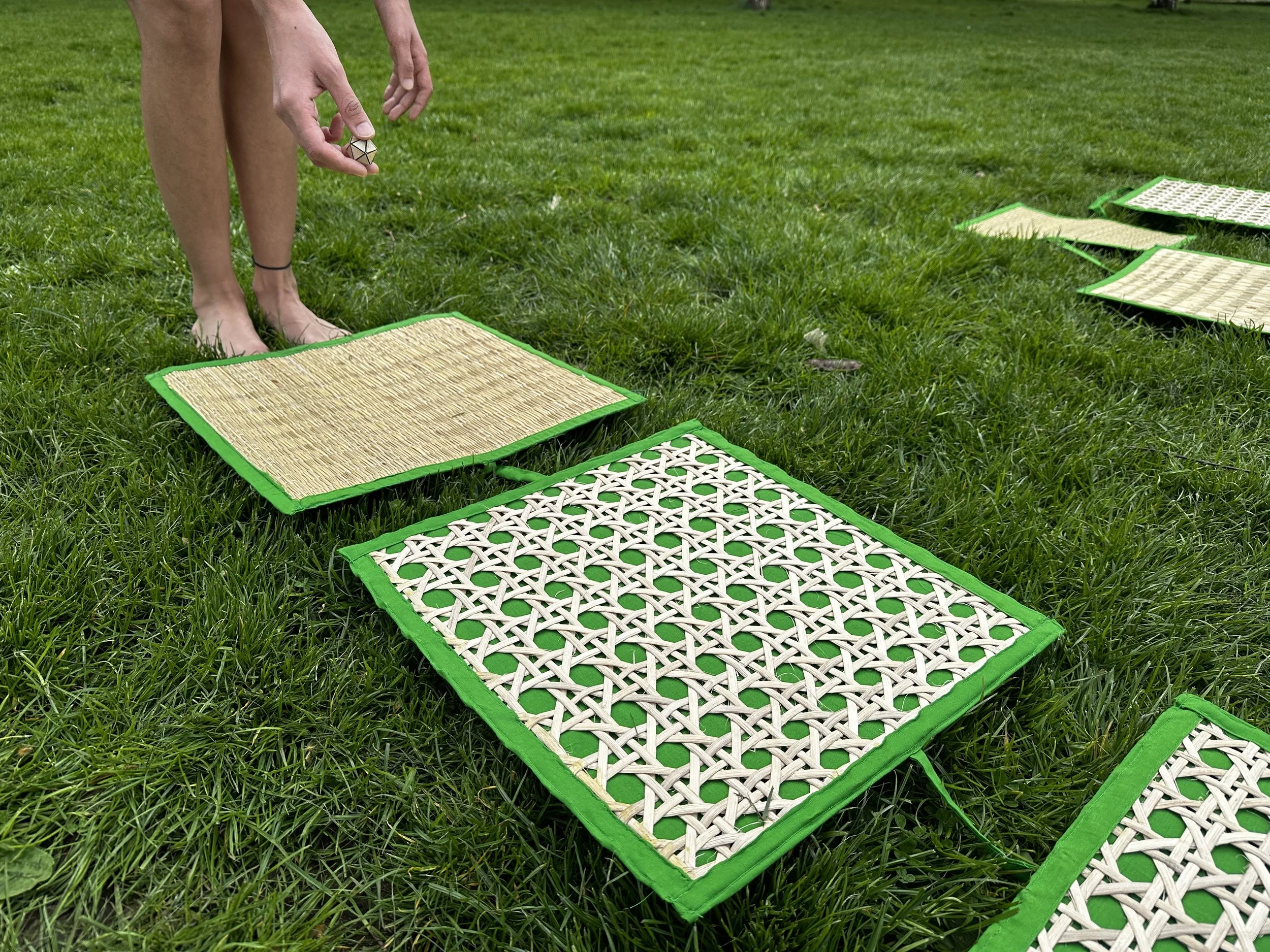 The game consists of a set of craft playing mats, a deck of snake identification and scenario cards, and a wooden dice. The mats can be laid out in suggested shapes of a snake on the ground, and the game is played in two teams. Players from each team take turns to roll the dice onto the mat in front of them, and are asked questions from the card deck depending on the material the dice lands on. The first team to finish the course wins. This gameplay is a result of co-design workshops conducted with students in North-east India, and is modelled on existing indigenous games that exist there.